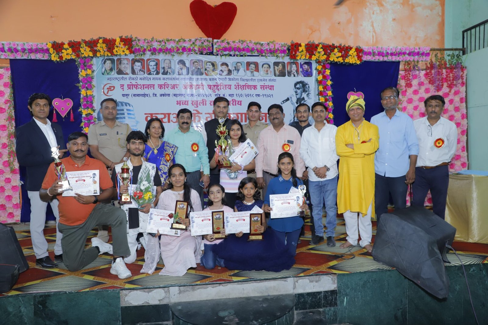 पातूर : अकोला जिल्ह्यातील एकमेव सांस्कृतिक, सामाजिक, शैक्षणिक क्षेत्रात अग्रेसर असलेली तसेच महाराष्ट्रातील शेकडो नवोदित गायक कलावंतांना व्यासपीठ उपलब्ध करून देणारी अकोला जिल्ह्यातील एकमेव द प्रोफेशनल करिअर अकॅडमी बहुउद्देशीय शैक्षणिक संस्था पातुर, जिल्हा अकोला यांच्या वतीने दरवर्षीप्रमाणे यावर्षी पातुर शहरात महाराष्ट्रातील सर्वात मोठी भव्य खुली राज्यस्तरीय कराओके गीतगायन स्पर्धा संस्थेचे संस्थाध्यक्ष ॲड. पंकज सुरेश पोहरे यांच्या प्रमुख मार्गदर्शनाखाली संपन्न झाली.