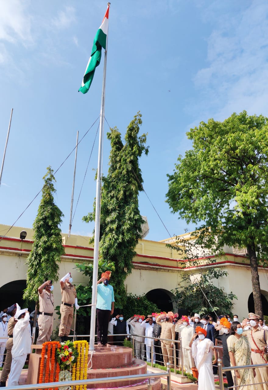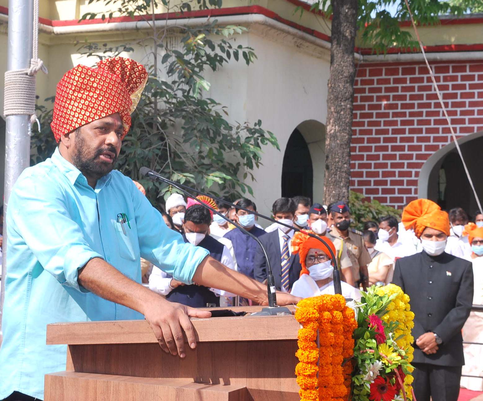 त्यानंतर पालकमंत्र्यांनी आपल्या संबोधनात सर्वप्रथम देशाच्या स्वातंत्र्यासाठी प्राणाची आहुती देणारे स्वातंत्र्य सैनिक, देशाच्या संरक्षाणासाठी प्राणांचे बलिदान देणारे सिमेवरील जवान, शहीद यांच्या पवित्र स्मृतीस अभिवादन केले.